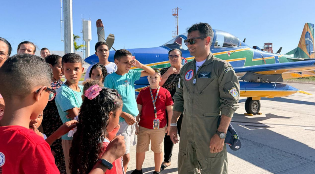 Crianças dos Espaços Cuidar vivem dia especial em visita à Esquadrilha da Fumaça no Aeroporto de Aracaju