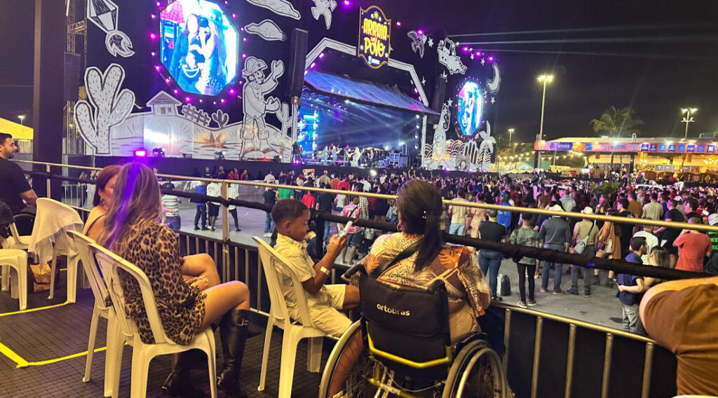 Já Alberto Souza, cadeirante, celebrou a acessibilidade e a visibilidade do espaço. “Participar do Arraiá do Povo com minha família, em um espaço acessível e com vista privilegiada, é uma conquista. Sinto-me respeitado e incluído nesta celebração tão importante para nossa cultura”, declarou com entusiasmo.
