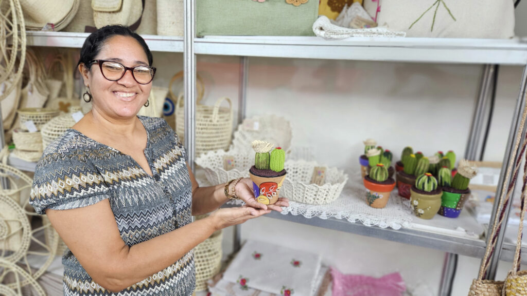 Natural de Ilha das Flores, Maria de Fátima é uma das empreendedoras articuladas pela Seasic que integram o espaço do Artesanato Sergipano & Economia Criativa. Na Vila do Forró, ela encontrou um local para dar visibilidade à sua produção. “Minhas peças de artesanato são todas feitas por mim e, mais uma vez, conto com a parceria da Seasic, que tem me dado a oportunidade de comercializar meus produtos, para além da Feira da Agricultura Familiar, da qual também faço parte”, relata.