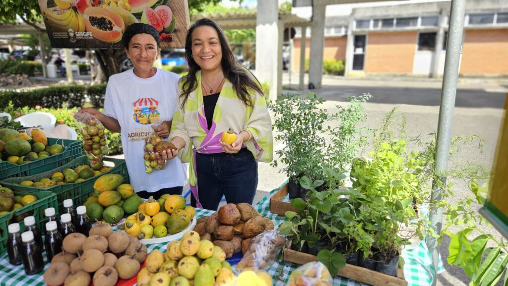 A secretária da Assistência Social, Inclusão e Cidadania, Érica Mitidieri, destaca a variedade de produtos expostos na feira; segundo ela, eles representam as macrorregiões de Sergipe e a diversidade de produtos oriundos da agricultura familiar, agroecológicos e artesanais de todo o estado.