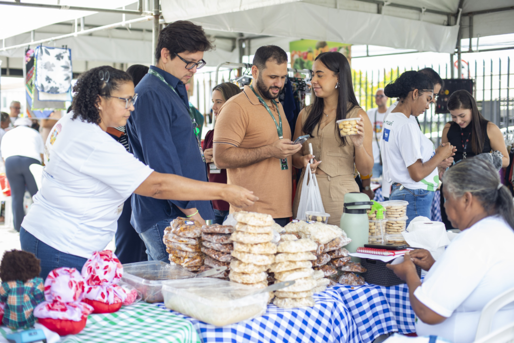 Durante toda a manhã, os funcionários do banco circularam pelo espaço da feira e aproveitaram para adquirir hortaliças, doces caseiros, peças de vestuário de produção artesanal, culinária regional, itens de artesanato e demais produtos da cultura sergipana.