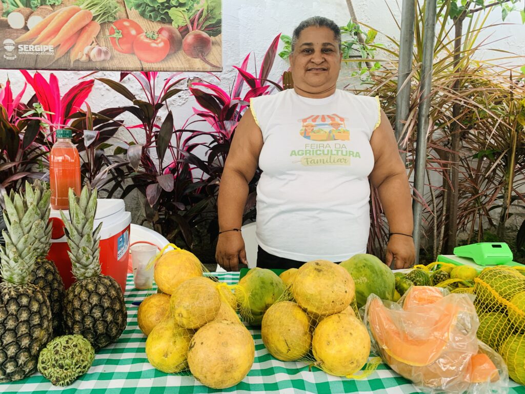 Moradora de Nossa Senhora da Glória, município do sertão sergipano, a lavradora Cristineide Ávila de Carvalho também participou com sua barraca cheia de frutas da estação e sucos naturais. “Eu mesma planto, colho e preparo. Os produtos são todos orgânicos. Quando é época de safra, trago jaca, manga, graviola e tudo mais que a gente produz porque o espaço é ótimo pra gente comercializar”, destacou.
