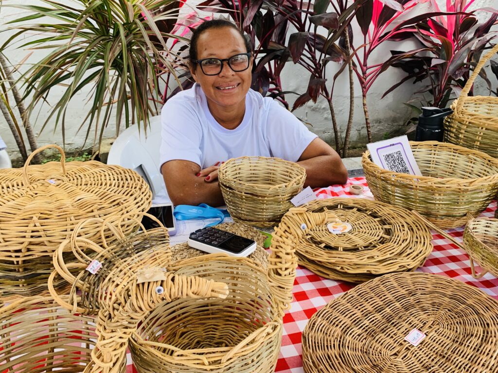 A feira contou com a participação de quem produz com as próprias mãos, como a artesã Roseilde Cruz Silva, que há 25 anos trabalha com peças feitas a partir de cipós e palha de dendê. “Sou eu quem colhe a matéria-prima e confecciona as peças. Estou na feira há três meses e acho uma boa vitrine, já que o público a cada dia conhece mais”, disse.