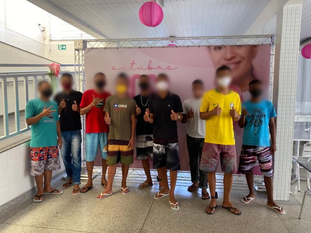 No mês alusivo à prevenção ao câncer de mama, 11 socioeducandos da unidade de semiliberdade Comunidade São Francisco de Assis – CASE I, unidade administrada pela Fundação Renascer, visitaram a Associação dos Amigos da Oncologia (AMO). A ação contou com o apoio da equipe técnica da unidade e foi realizada no último dia 15, com o objetivo de conscientizar e apoiar as famílias dos adolescentes.