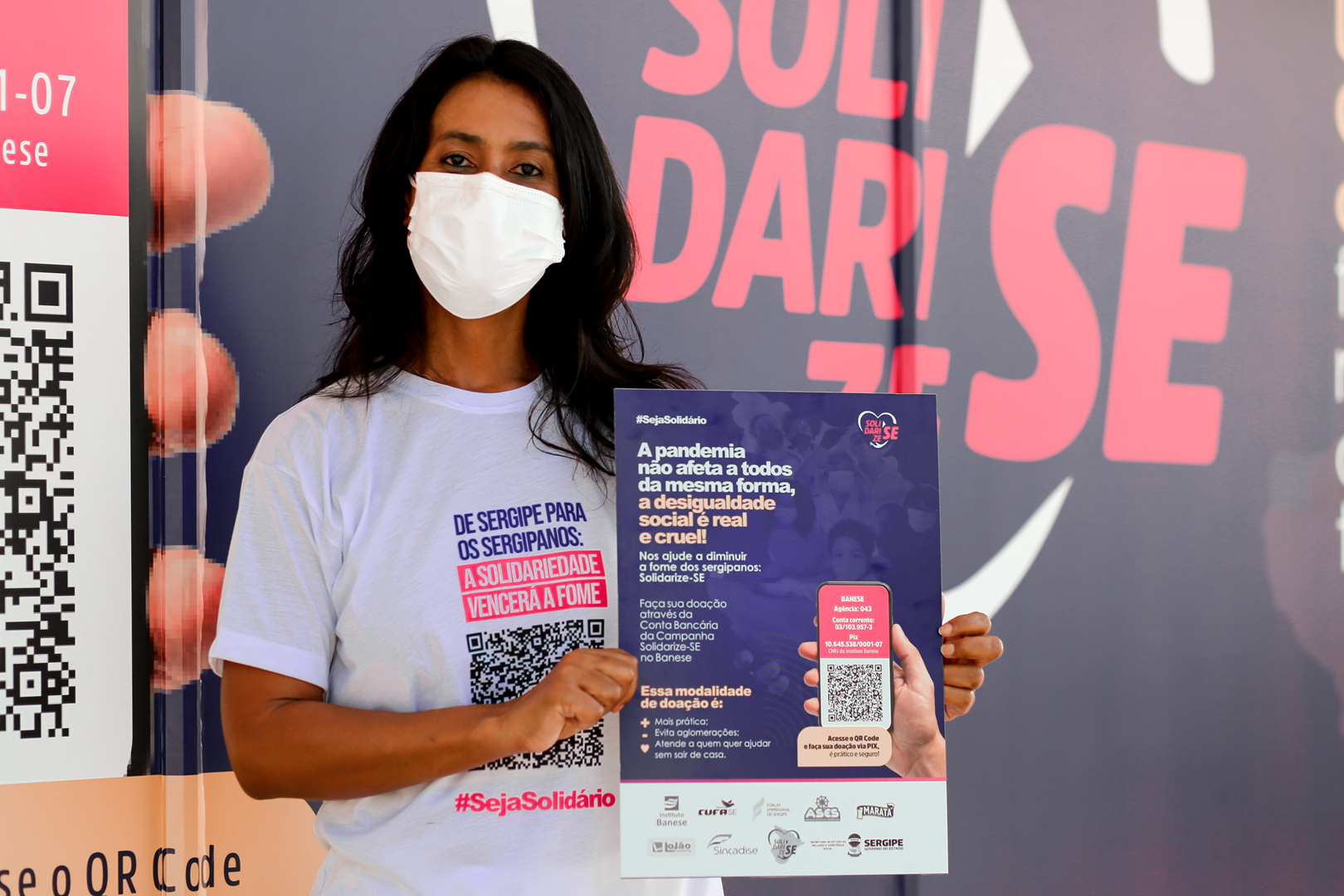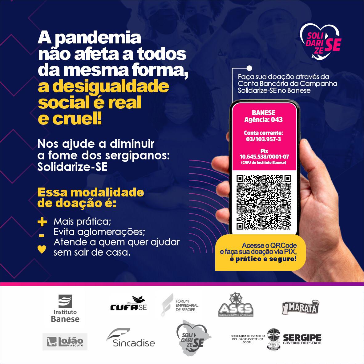 A campanha foi idealizada pela vice-governadora Eliane Aquino, que está à frente da mobilização de parceiros que possam contribuir com as pessoas em risco social e insegurança alimentar. Segundo ela, quem preferir pode também fazer doação de valores, sem precisar sair de casa, através de PIX ou transferência bancária. Os valores serão revertidos em alimentos e itens de proteção e higiene. “Faremos semanalmente a prestação de contas dos recursos arrecadados. Faça sua doação, seja o valor que for. Você estará ajudando a amenizar a fome de uma ou mais famílias sergipanas. Esta é uma campanha de todos que vivem em Sergipe, para o próprio povo sergipano. Conto muito com a ajuda de toda a população”, convocou Eliane. As doações podem ser feitas por meio de transferência bancária para a Conta Corrente 03/103.957-3, agência 043 do Banese, ou ainda por meio da chave-PIX 10.645.538/0001-07 (CNPJ do Instituto Banese).