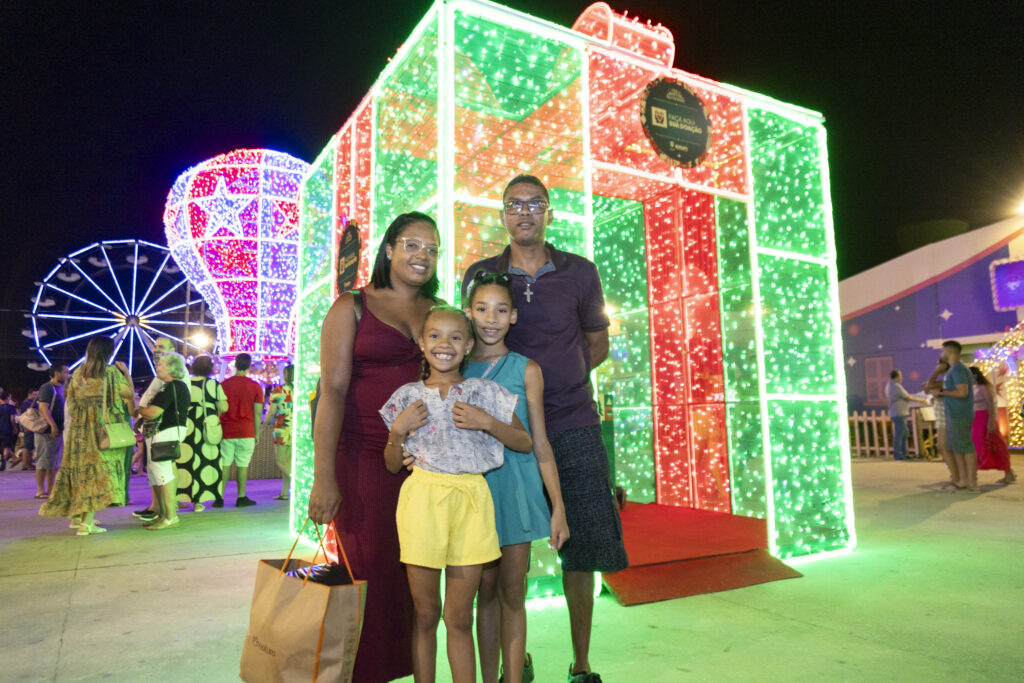 Guiada pelo espírito de caridade, de “fazer o bem sem olhar a quem”, a dona de casa Rosemeire Góis e o marido, Adejair Júnior, acompanhados das filhas Ane Vitória e Ana Sofia, foram até a Vila do Natal para também fazer sua doação. “Separei algumas roupas das minhas filhas e minhas. Sempre costumo doar, geralmente faço doações pra igreja perto da minha casa. Soube pelo Instagram que teria o ponto de coleta, então vim conhecer a vila e já aproveitei pra fazer a doação. Achei ótimo colocar esse ponto aqui, porque há muitas pessoas carentes, que precisam. E a Vila do Natal Iluminado está muito linda”, afirmou.
