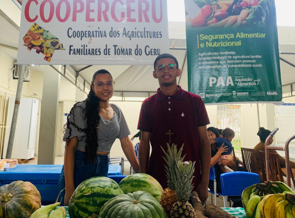 Já os agricultores Gabriel da Silva Santos e Cosmira Santos Oliveira, do Assentamento Espírito Santo, no povoado Tabuleiro, levaram frutas e hortaliças, além do tradicional ‘bolinho bacia’. “Aqui temos 22 pessoas envolvidas. É ótimo poder expor o que a gente produz, mostrar para a comunidade e também abrir novos caminhos de comercialização”, destacaram.
