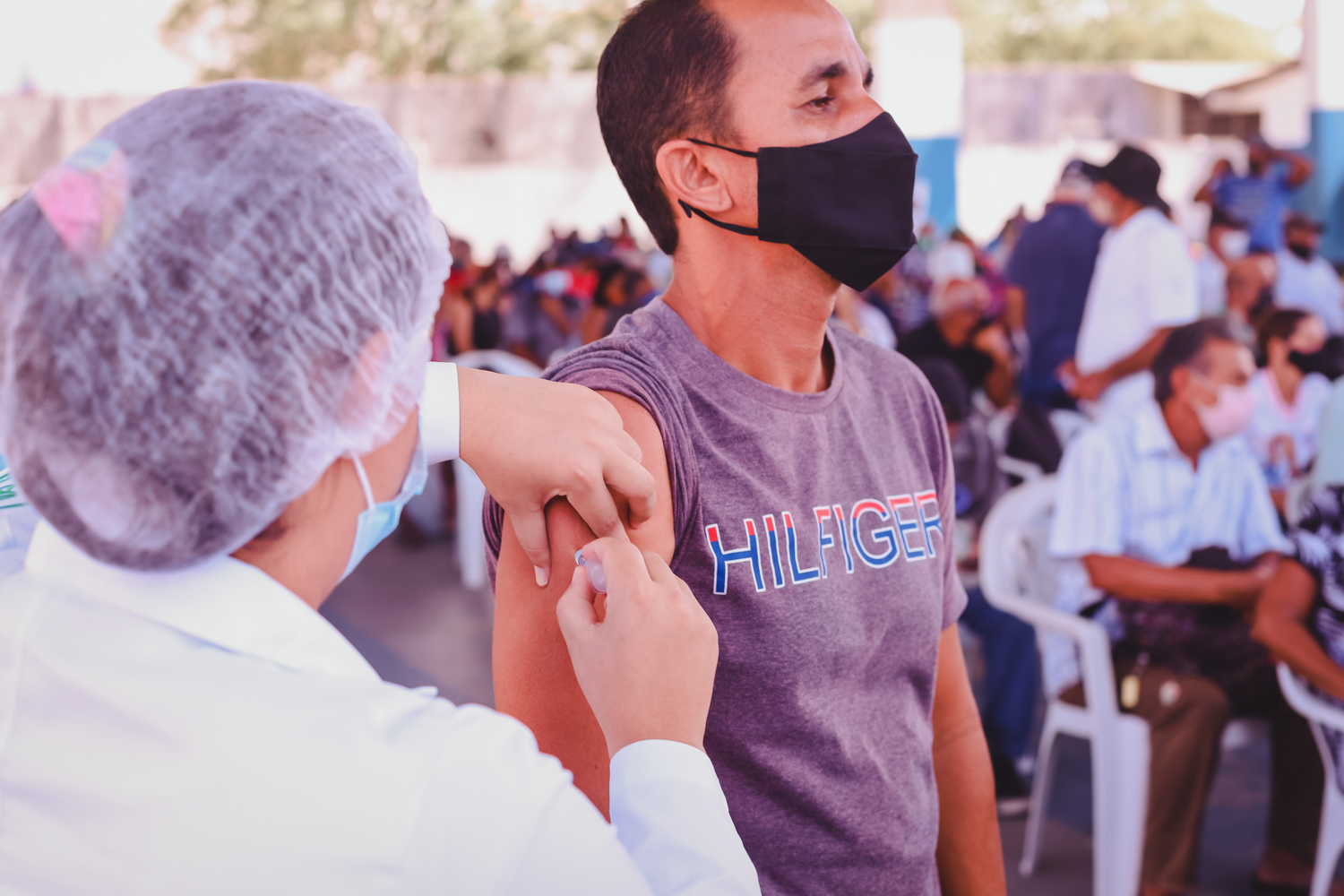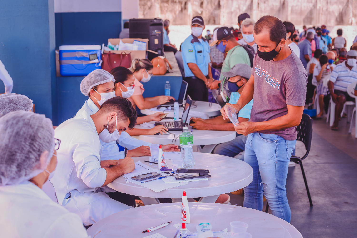 Além da refeição e da vacina, os usuários também tiveram acesso a roupas, como conta o diretor administrativo do Restaurante Popular Padre Pedro, Roger Alves Santana. “A campanha de vacinação realizada aqui é mais uma forma de humanização que a SEIAS vem promovendo no serviço. A parceria com as SES e SMS possibilita que, no momento de buscar sua quentinha, o usuário do restaurante possa tomar a dose da sua vacina e completar o seu ciclo vacinal. Além disso, estamos entregando peças de roupa para quem se imuniza, como uma forma de icentivar a vacinação. Agrdecemos a Sefaz pela doação”, comentou Roger.