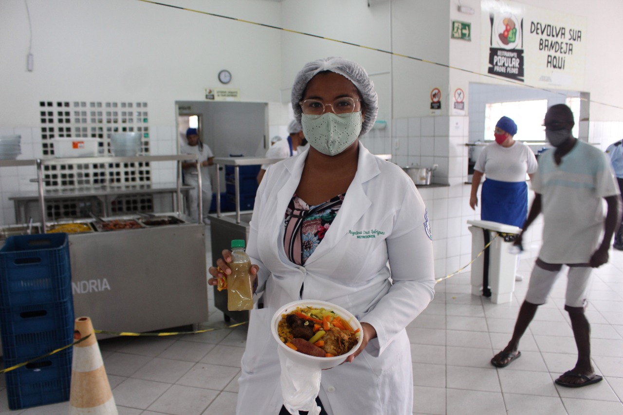 Usuário do restaurante popular, Fernando Domingos é vendedor ambulante no Centro de Aracaju e vai ao Padre Pedro adquirir sua quentinha por R$ 1 real, de segunda a sexta-feira. Para ele, é importante valorizar o clima junino com cardápio especial. “O São João é a tradição do nordestino, né? Infelizmente, este ano não tem forró, mas a animação continua”, afirmou. O ambulante garantiu que está se cuidando contra à covid-19 e já foi vacinado com a primeira dose da vacina. “Apenas a máscara não resolve. Tem que tomar a vacina pra se proteger”, aconselha Fernando. Já a também ambulante Marcleide de Souza, vem com a filha ao Padre Pedro todos os dias, no almoço e no jantar, e aprovou a mudança no cardápio. “É legal, é bom pra gente. A comida é uma delícia, principalmente dia de hoje, que é churrasco. Hoje é especial. A comida é gostosa e alimenta as pessoas que não tem condições de comprar. Por um real, ajuda muito mesmo”, considera Marcleide.