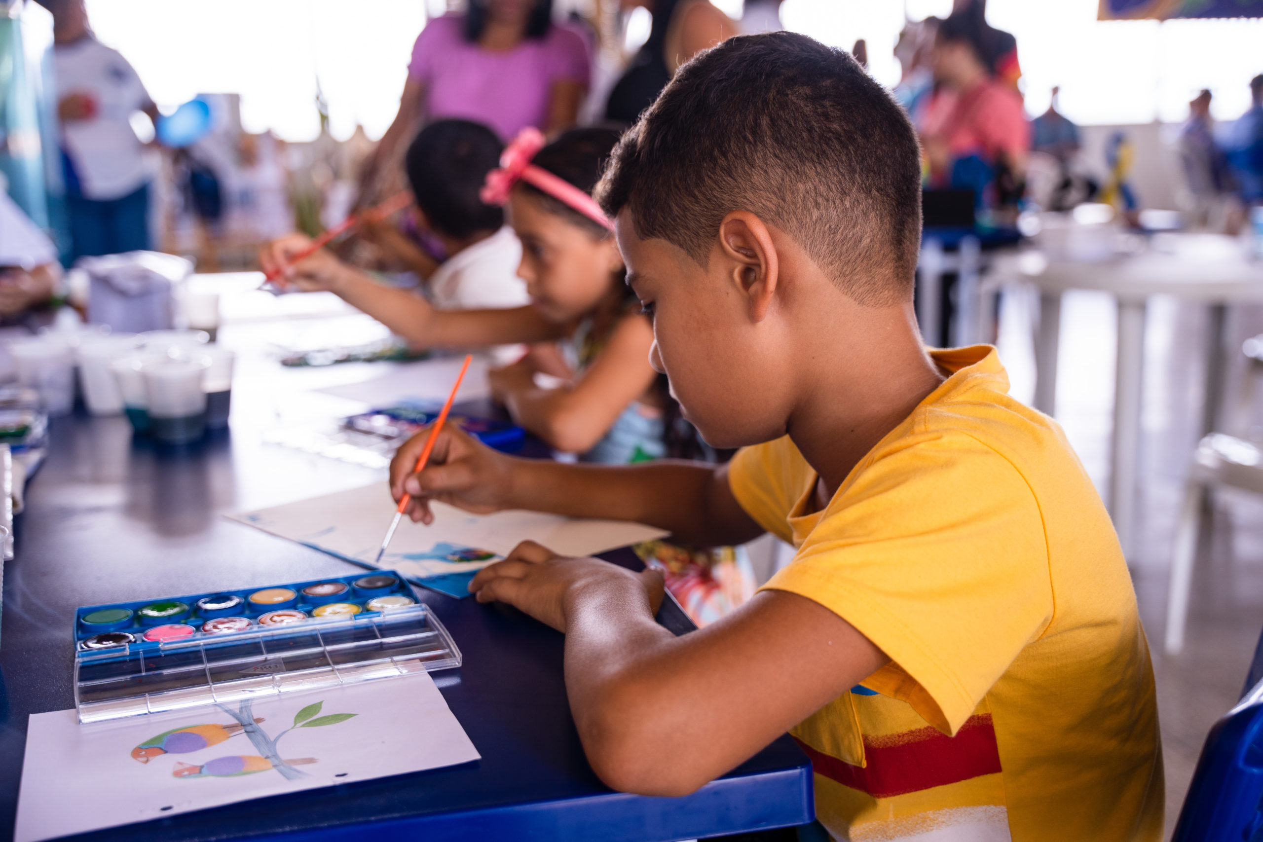 A servidora pública Mariclecia Santos, 45 anos, levou o filho Ícaro de 11 anos, para participar das atividades lúdicas desenvolvidas pela Seasc. As atividades envolveram acolhimento musical e escuta qualificada dedicados a conhecer a percepção das crianças sobre o contexto em que vivem. O objetivo é subsidiar a elaboração do Diagnóstico da Situação da Primeira Infância nos municípios. “Estou amando. Muito boa as atividades aqui. Aproveitei que ele veio fazer a carteira de identidade para participar. Ele está gostando muito”, comentou.