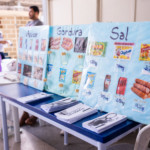 Outra ação desenvolvida foi a avaliação antropométrica, com a aferição de medidas para verificação do estado nutricional da população. Também foi realizada uma dinâmica com imagens, com o propósito de apresentar trocas alimentares viáveis para incrementar a ingestão de nutrientes entre a população em vulnerabilidade social. Foi realizada, ainda, a distribuição de livretos com receitas que propõem o aproveitamento integral de alimentos. Quem foi ao Colégio Polivalente teve a oportunidade de participar da palestra sobre nutrição alimentar.