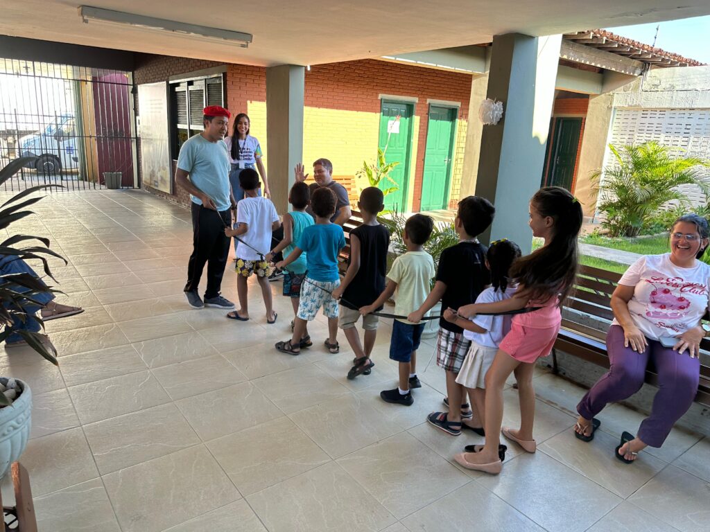 Enquanto mães, pais e cuidadoras participavam de momentos de escuta e troca de experiências, as crianças eram envolvidas em uma programação especial, com brincadeiras, atividades de pintura promovidas pelo projeto “Inclusão pela Arte” e uma oficina de psicomotricidade — voltada ao desenvolvimento da coordenação motora, cognição, aspectos emocionais e interação social.