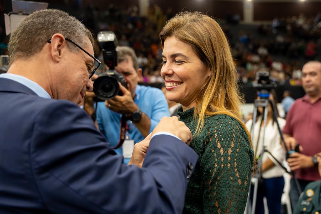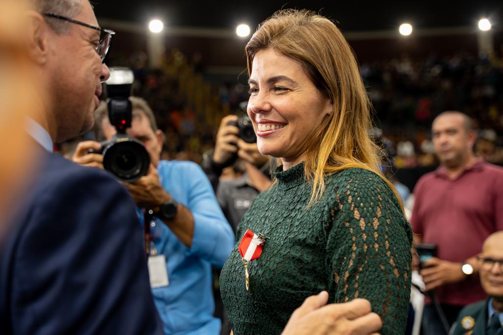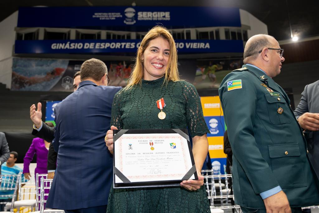 Na noite de quarta-feira, 26, a secretária de Estado da Assistência Social e Cidadania (Seasc), Érica Mitidieri, participou da cerimônia de formatura dos 653 policiais da Polícia Militar de Sergipe promovidos a postos e graduações superiores em suas carreiras. Na ocasião, recebeu a mais alta honraria da Polícia Militar, a medalha Alferes Tiradentes.