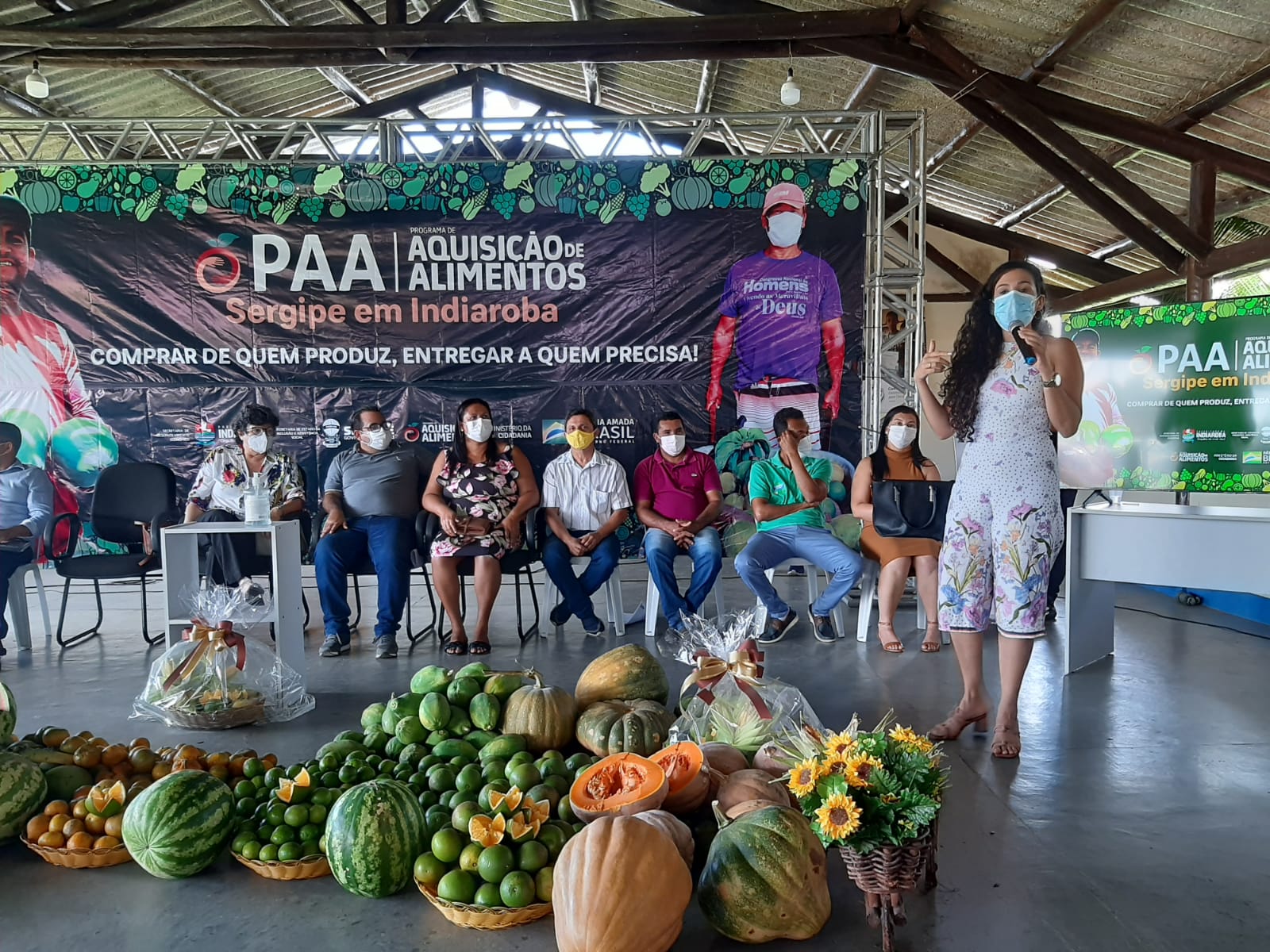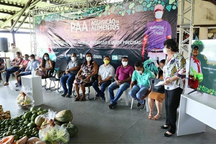 Na última semana, a Secretaria de Estado da Inclusão Social e Assistência Social (SEIAS) prestigiou o I Seminário do Programa de Aquisição de Alimentos – PAA Estadual realizado pelo município de Indiaroba. A superintendente executiva da SEIAS, Heloísa Mendonça, representou a secretária Lucivanda Nunes no evento, juntamente com a assessora técnica do PAA na SEIAS, Tatiana Canuto. Elas foram recebidas pelo prefeito Adinaldo Nascimento e sua equipe, além de agricultores e entidades socioassistenciais beneficiadas pelo programa. Na modalidade compra com doação simultânea, o PAA Estadual vem investindo cerca de R$ 3 milhões, desde 2020, na aquisição de produtos da agricultura familiar e posterior distribuição a famílias em risco alimentar nos municípios.