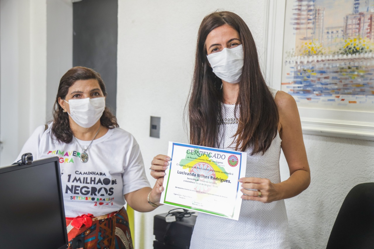 Nesta quarta-feira (19), a secretária de Estado da Inclusão e Assistência Social, Lucivanda Nunes, recebeu o Certificado de Reconhecimento Amigos dos Ciganos, entregue pelas mãos do presidente do Instituto Cigano do Brasil – ICB, Rogério Ribeiro, acompanhado de representantes nacionais e locais do Instituto. Durante o encontro, realizado na SEIAS, também foram debatidas demandas socioassistenciais para comunidades ciganas em Sergipe.