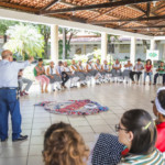 Além da roda de conversa e das apresentações de dança, os idosos puderam contar com sessão de meditação, reiki, auriculoterapia e reflexologia podal, práticas integrativas oferecidas pelo MOPS. Antônia Barbosa dos Santos, de 65 anos, aproveitou a oportunidade para fazer a acupuntura auricular. “Gostei do tratamento que tive, fiz massagem nos pés também e gostei muito do dia de hoje. Estou há dois meses no Espaço Cuidar Bugio e nesse pouco tempo sou outra pessoa, me sinto parte de uma família. Hoje eu consigo me cuidar, faço exercícios e fazemos também passeios por diversos lugares da cidade”, disse.